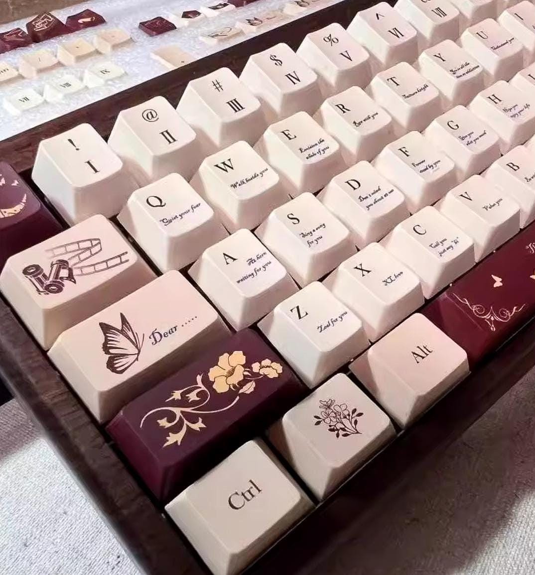 Butterfly Love Letter Keycap Set: Cherry Profile PBT, Film, Book and Galaxy Theme Keycaps