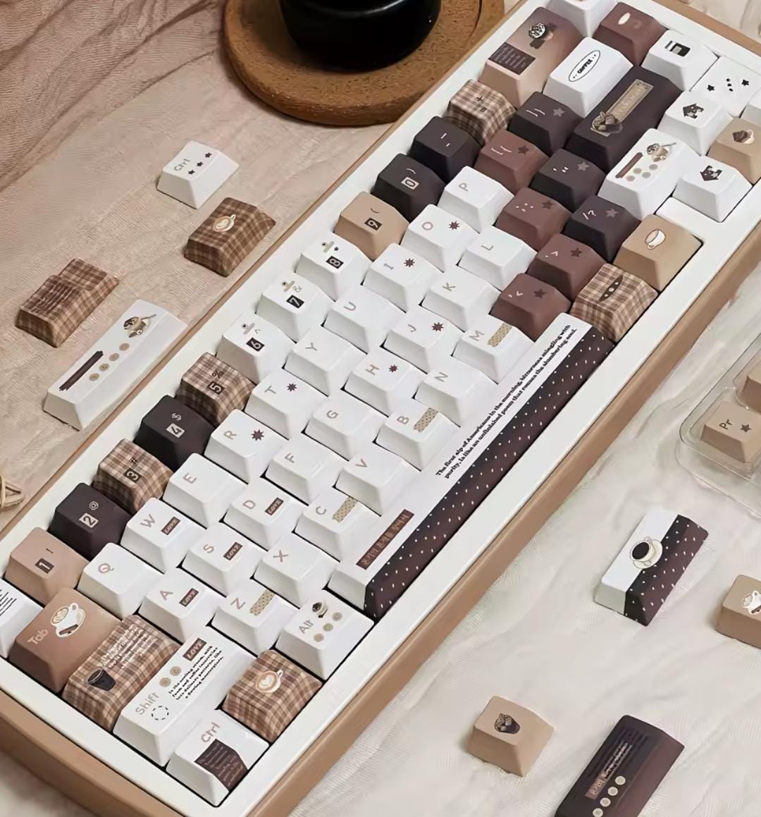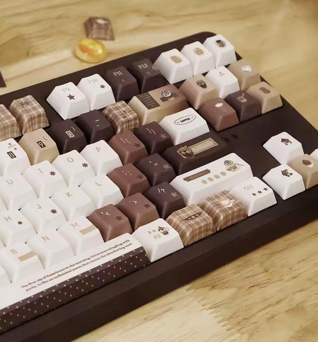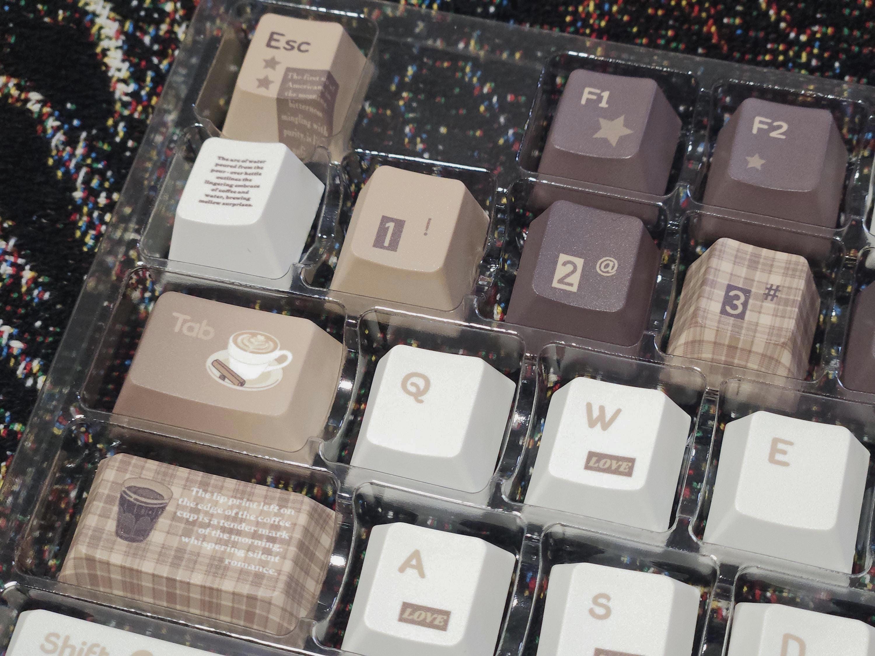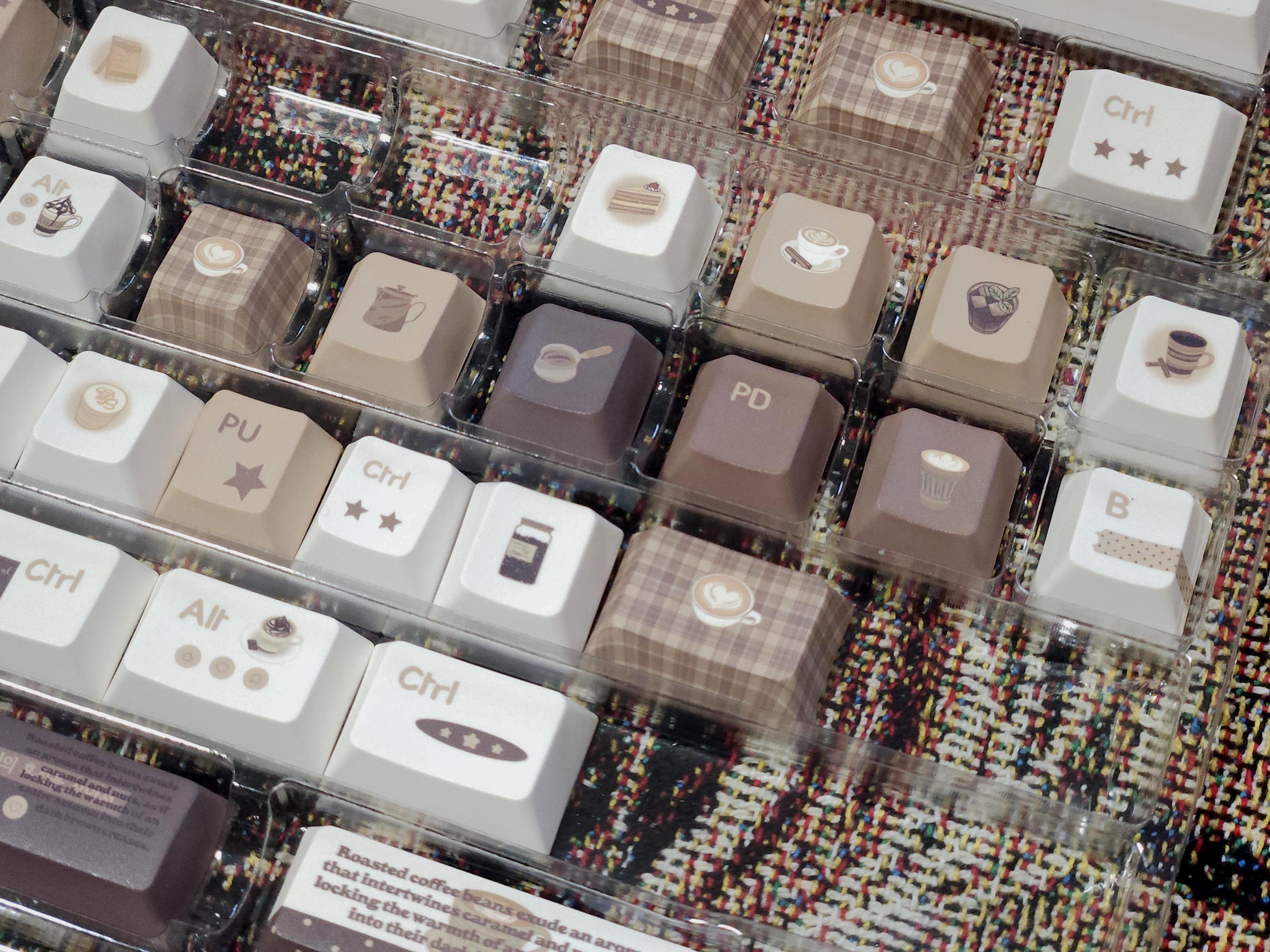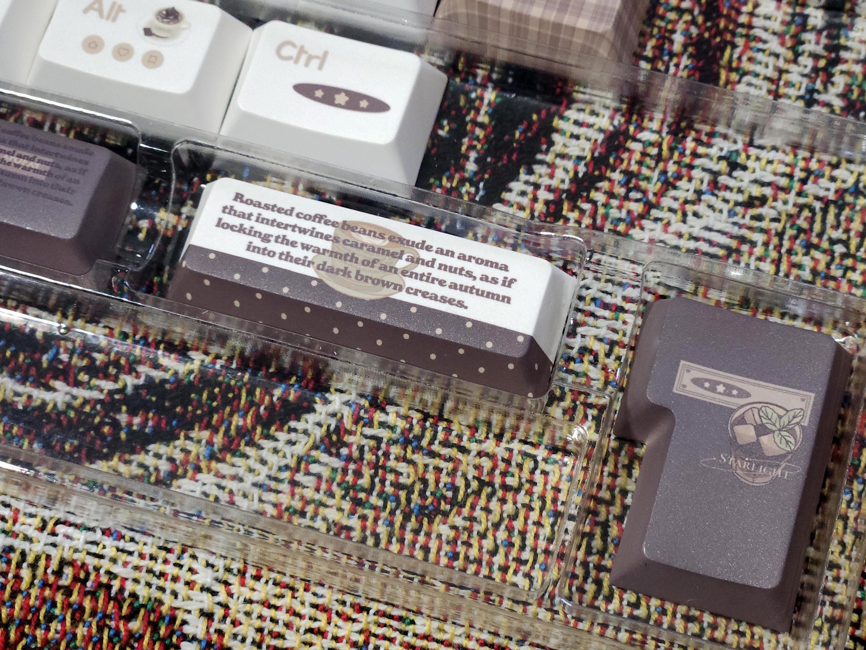 Poetry and Coffee Keycap Set: Cherry Profile, PBT, Cream and Brown Tea Themed Keycaps