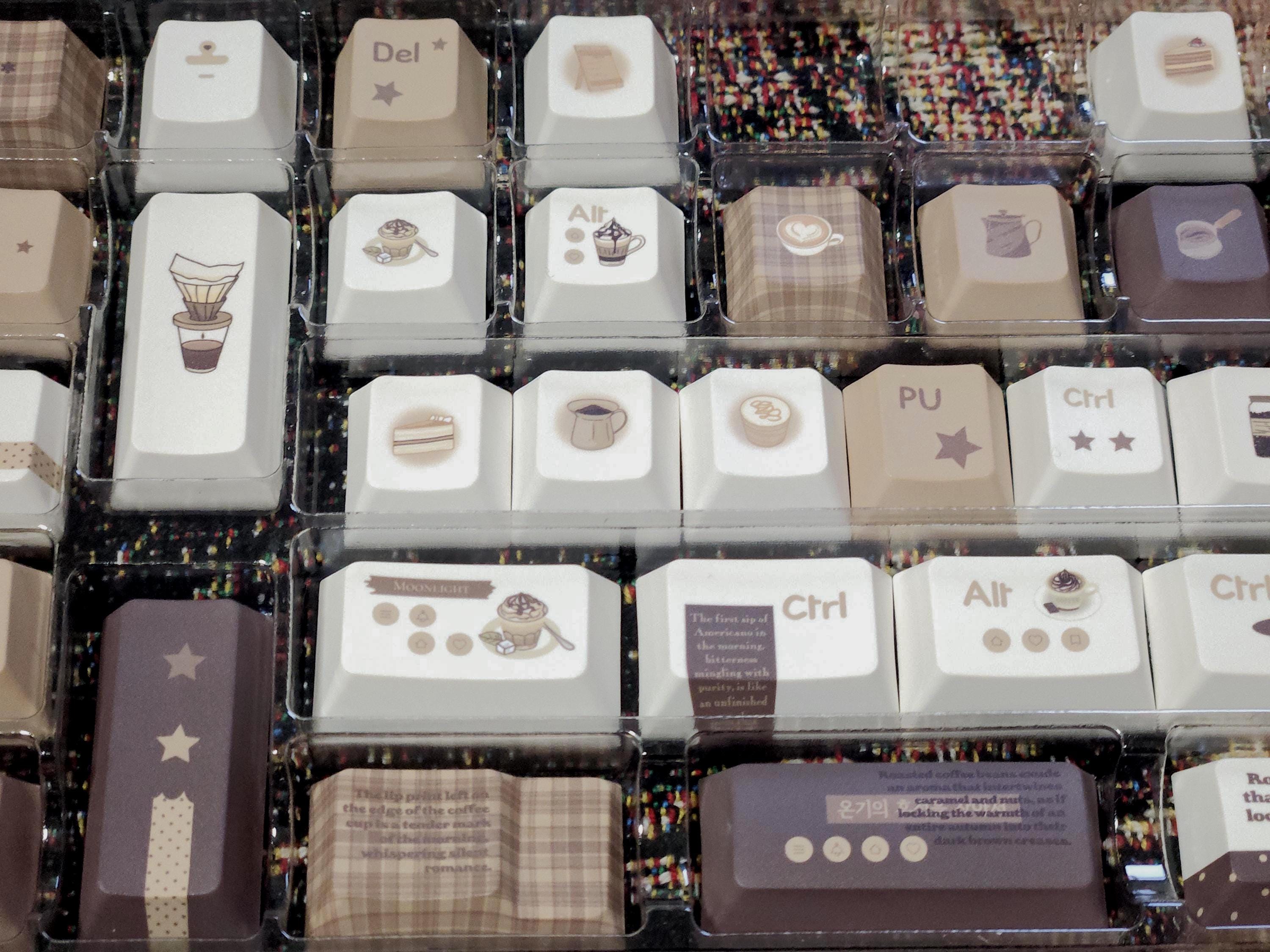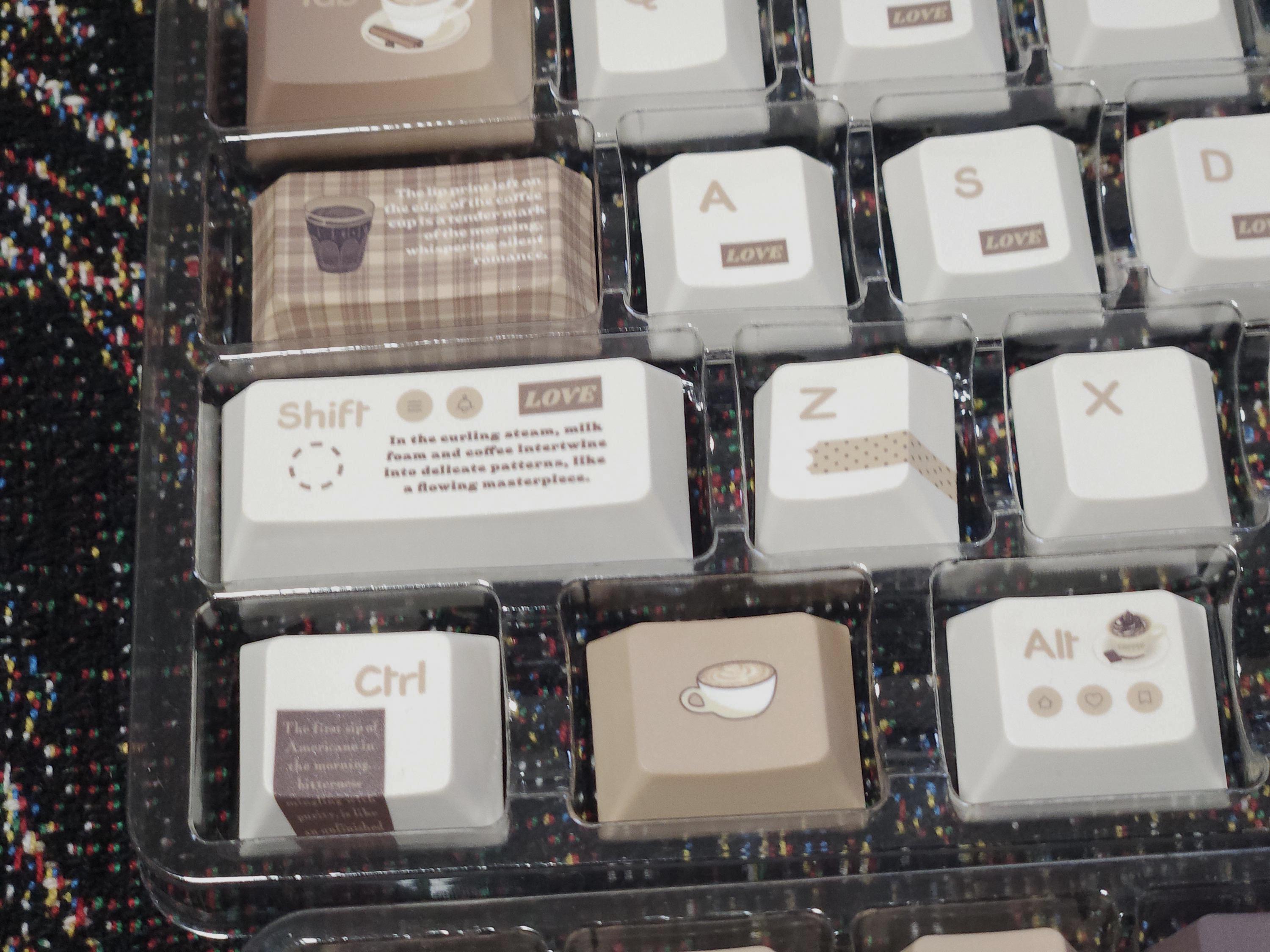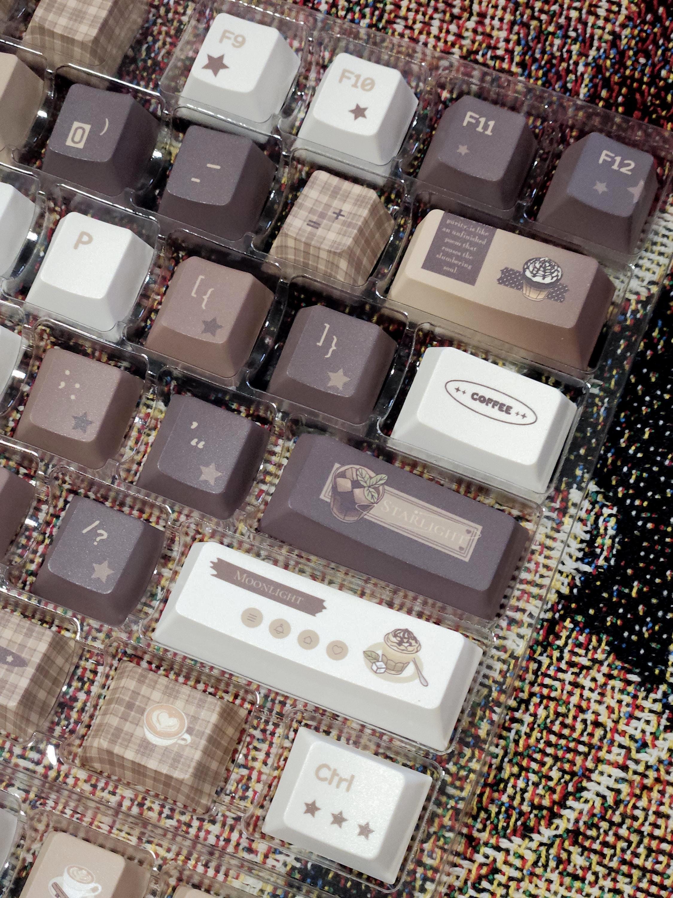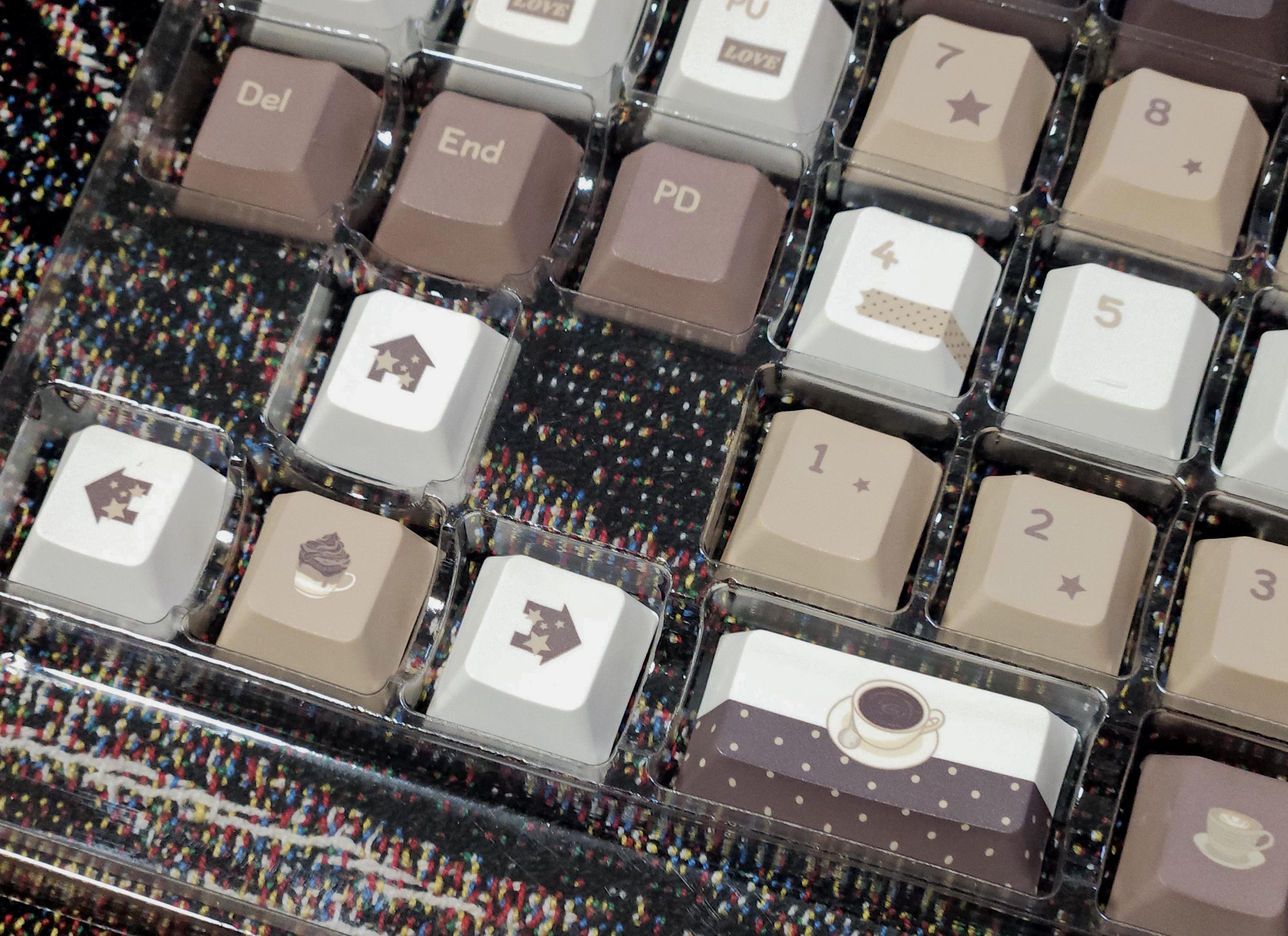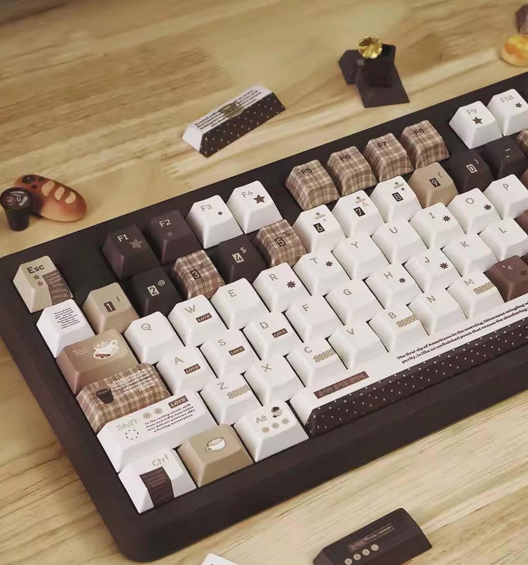 Poetry and Coffee Keycap Set: Cherry Profile, PBT, Cream and Brown Tea Themed Keycaps